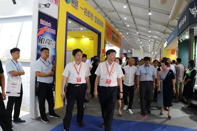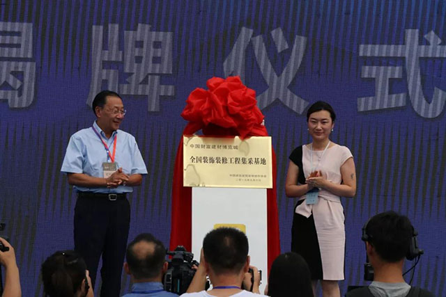 中國建筑衛(wèi)生陶瓷協(xié)會會長繆斌、淄博市人大常委會副主任王法亮等共16位領(lǐng)導(dǎo)上臺共同打開象征希望的卷軸,“2019中國?江北瓷磚博覽交易會”正式開幕。“中國江北?瓷磚博覽交易會”將會融合更多產(chǎn)業(yè),打造多元化的展會生態(tài)圈。