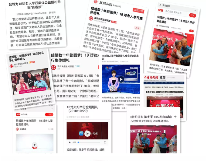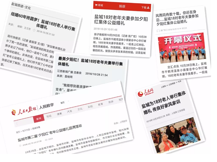 (數(shù)字鹽城10月30日訊)由鹽城文明辦、鹽城市婦聯(lián)、鹽城市老齡協(xié)會舉辦,人民日報數(shù)字鹽城、現(xiàn)代快報承辦的第二屆“夕陽紅”老年婚禮活動,于10月28日正式舉行且圓滿落幕。遠航家居作為特別贊助商親臨現(xiàn)場,現(xiàn)場來了很多家媒體,本次活動結(jié)束以后,多家媒體通過電話及短信,希望了解更多關(guān)于本次活動的花絮和18對夫婦的臺前幕后故事,以便于更加貼切的進行報道。