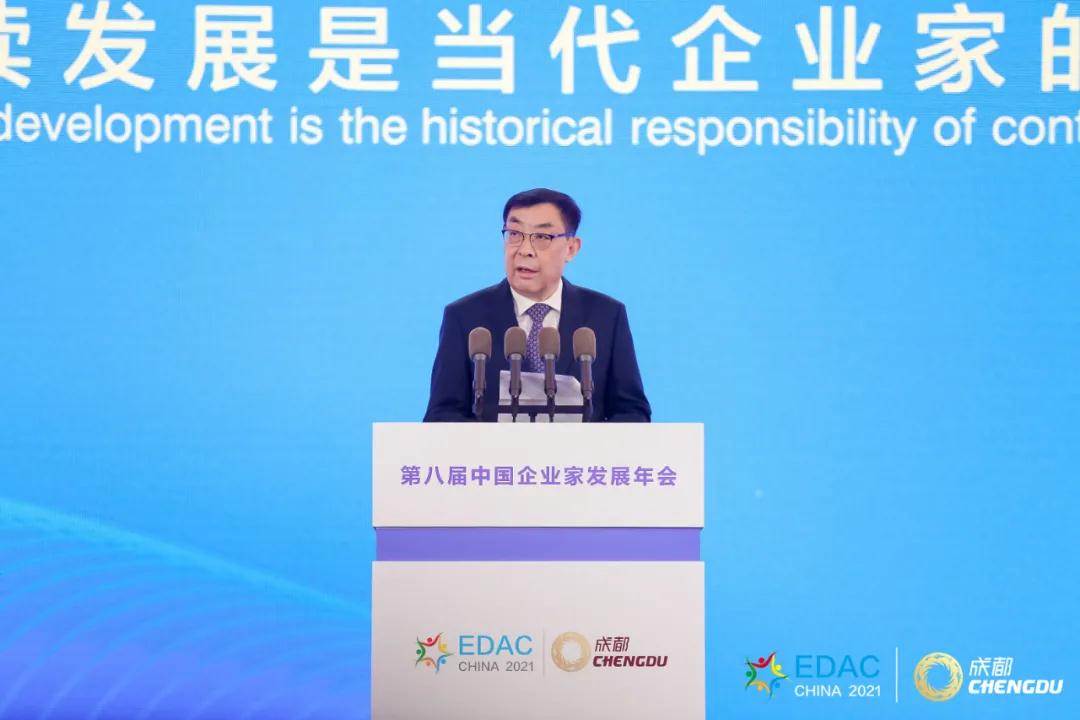 馬培華在致辭中表示,第八屆中國企業家發展年會聚焦四川成都區域發展機遇,帶動企業家了解四川、投資四川,目標精準,意義重大,值得慶賀,希望廣大企業家搶抓機遇,攻堅克難,努力實現高質量發展,以優異成績獻禮黨的百年華誕。